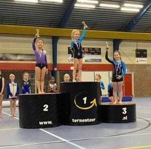 Feline Wiersma (instap B4) en Roanne Hiemstra (pupil B4) kampioen bij Turn on Tour turnwedstrijd te Koudum.